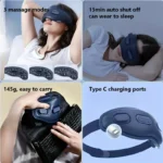 12 Point Massage, Hot Compress, Eye Massager, PU Leather, Soft And Foldable, Visual Window