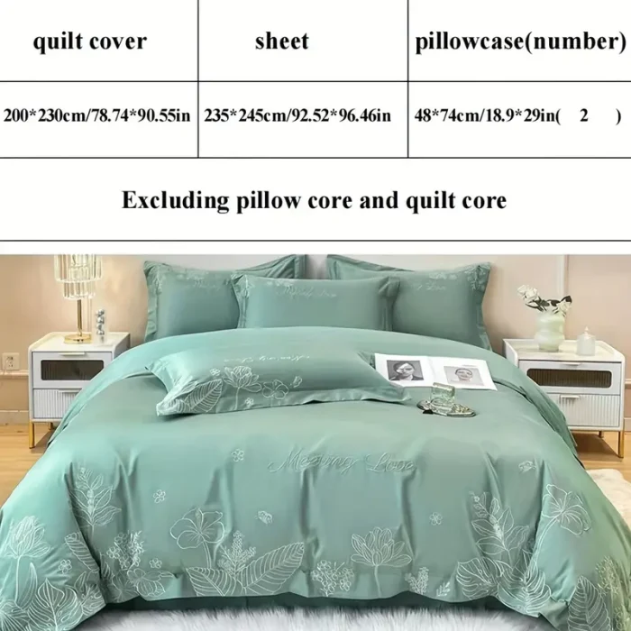 Luxurious Embroidered 4-Piece Cotton Twill Duvet Cover Set – 100% Cotton Sanded Fabric, Zipper Closure, Active Printing, Machine Washable, All-Season Comfort – Includes 1 Duvet Cover, 1 Flat Sheet, 2 Pillowcases (Duvet & Pillow Included)