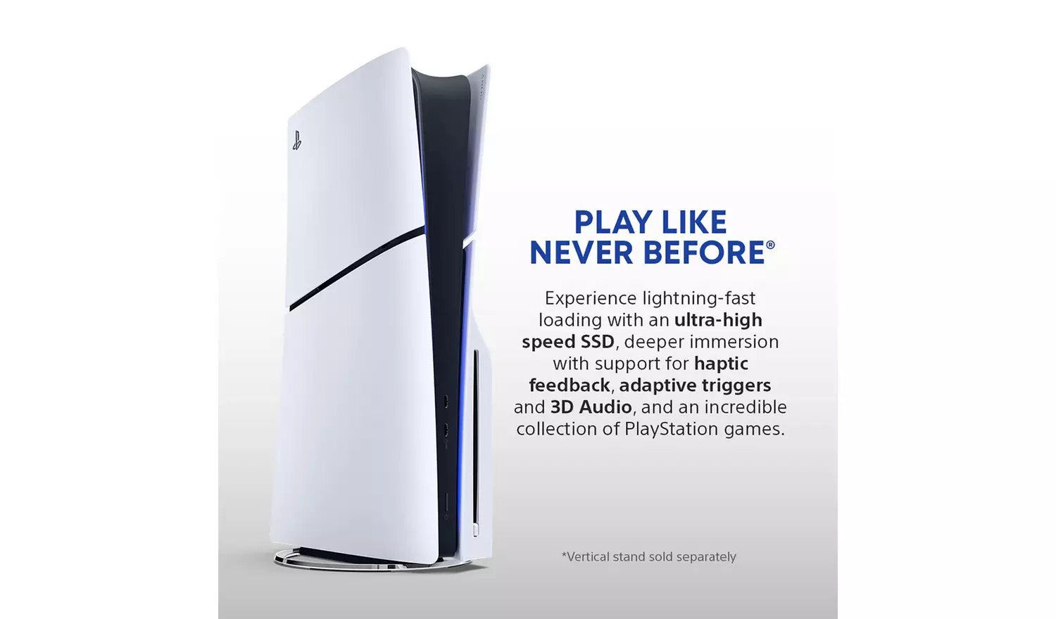 PlayStation 5 Console. The PS5 console unleashes new gaming possibilities that you never anticipated. Experience lightning-fast loading with an ultra-high speed SSD, deeper immersion with support for haptic feedback, adaptive triggers, and 3D Audio, and an all-new generation of incredible PlayStation games.