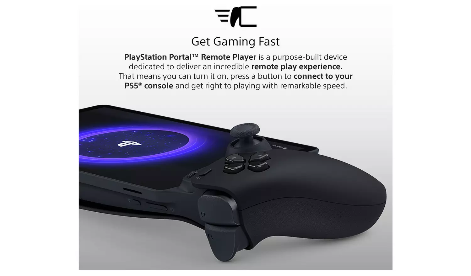 Get Gaming Fast – PlayStation Portal Remote Player is a purpose-built device dedicated to delivering an incredible remote play experience. That means you can turn it on, press a button to connect to your PS5 console and get right to playing with remarkable speed.